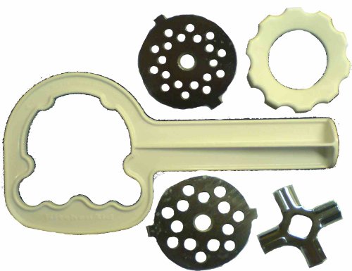 Description : Questo kit contiene il estremamente popolare KitchenAid attaccamento Grinder Food and Sausage Stuffer. Il insaccatore è dotato di due tubi di dimensioni diverse. Il macinino da cucina è dotato naturalmente e piatti raffinati. The Grinder cibo si attacca a qualsiasi robot da cucina KitchenAid che ha un hub allegato (che è più o meno tutti realizzati negli ultimi 40 anni!). Un vassoio di cibo in più grande (FT) è disponibile anche separatamente rendere l'alimentazione del grinder con grandi quantità di carne o di pasta più facile.